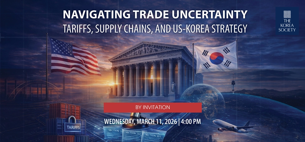 In light of the recent Supreme Court decision regarding the use of IEEPA for tariffs, The Korea Society is hosting a closed-door discussion to examine the evolving architecture of U.S. trade enforcement authorities and the implications for U.S.–Korea economic relations. The conversation will explore the expected trajectory of U.S. tariff policy following the February 20 ruling, including potential policy pathways involving Sections 122, 232, and 301 and the broader strategic considerations shaping intergovernmental coordination between Washington and Seoul. The discussion will also consider how this period of uncertainty may present an opportunity to strengthen bilateral economic cooperation in ways that advance mutual benefit.