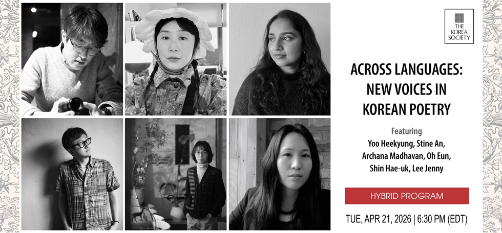 Across Languages: New Voices in Korean Poetry brings together acclaimed South Korean poets Lee Jenny, Yoo Heekyung, Oh Eun, and Shin Hae-uk with award-winning literary translators Archana Madhavan and Stine An, for a Korean–English bilingual reading and conversation to share the dynamism and innovations of language in Korean poetry culture. Through poetry and discussion, the speakers examine the cultural centrality of poetry in Korea and consider translation as a critical, creative practice that reshapes how literature circulates, sounds, and is felt across languages.