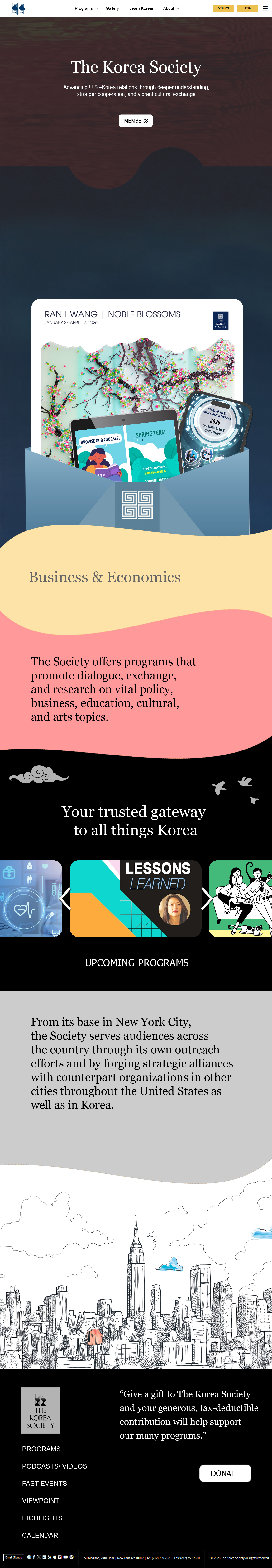 is a nonprofit, nonpartisan, 501(c)(3) organization with individual and corporate members that is dedicated solely to the promotion of greater awareness, understanding, and cooperation between the people of the United States and Korea. Learn more about us What is the korea society.